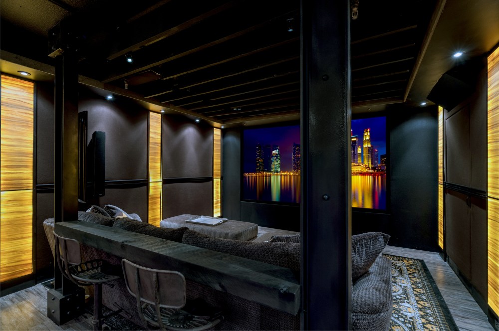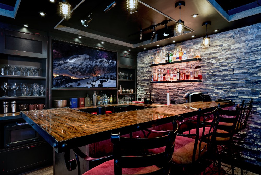 The Media Room also includes a beautiful bar built around a Sony 65” OLED screen.
